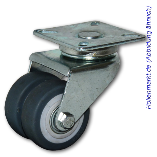 Apparate-Doppel-Lenkrolle mit grauem TP-Gummirad 50 mm, Kugellager und Plattenbefestigung