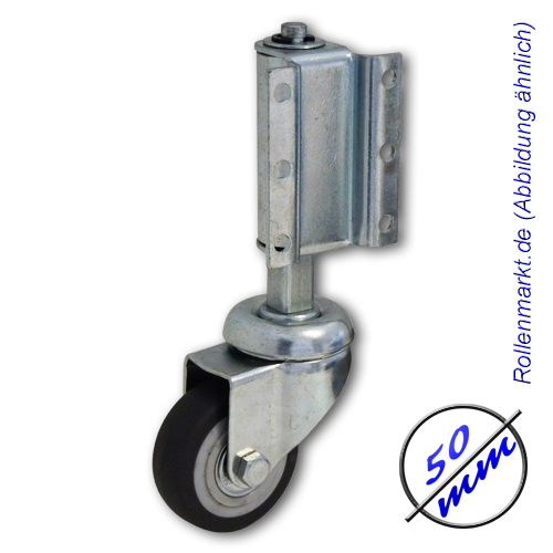 Die Leiterrollen H77 und H76 sind gefederte Rollen mit belastungabhängiger Feststellwirkung für Metall- und Holzleitern oder ähnliche Steighilfen. So drücken sich die Rollen beim Betreten einer Leiter oder eines Tritthockers ein und das Gerät steht fest am Boden. Gesamt-Federdruck 17 kg bei Gesamt-Federweg 20 mm. Die Anschraubplatte kann demontiert und nach Wunsch um 90° geschwenkt werden.