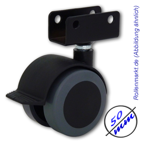 Möbelrolle mit weicher Lauffläche, Plattenschuhbefestigung und Radstopp, Schraublöcher seitlich